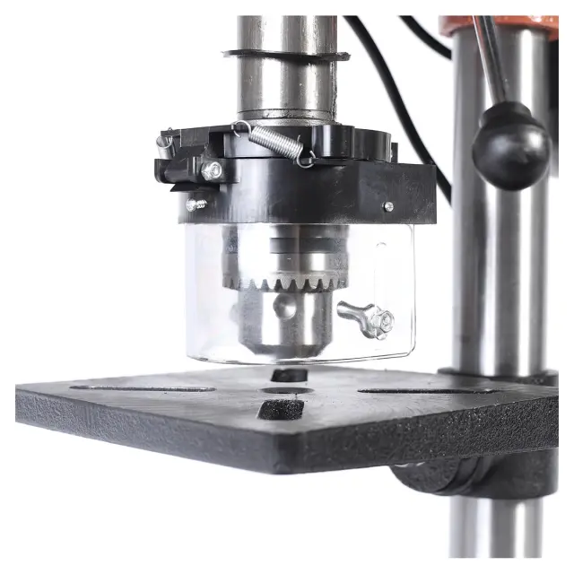 Сверлильный станок оснащен надежными тисками, которые обеспечивают стабильную фиксацию обрабатываемой детали. Это позволяет избежать смещения заготовки во время сверления, что критично для достижения высокой точности. Тиски легко настраиваются и подходят для различных размеров деталей, что делает процесс работы более удобным и эффективным.