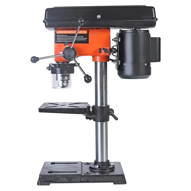Одной из ключевых особенностей модели является вертикальное перемещение рабочего стола, осуществляемое с помощью удобной вращающейся рукоятки. Это решение позволяет точно дозировать подачу инструмента, что особенно актуально при работе с различными материалами. Мастера могут легко настраивать глубину сверления, что обеспечивает максимальную гибкость и контроль над процессом.