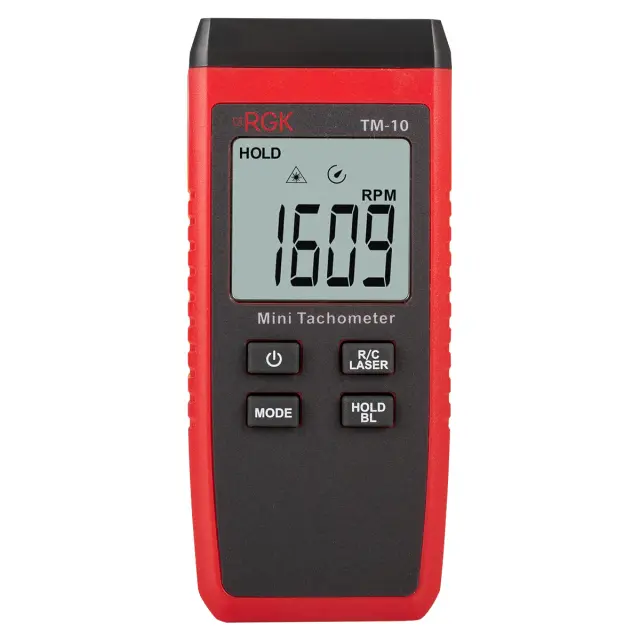 Хорошее устройство, лаконичный дизайн, подсветка ненавязчивая, кнопка удержания, есть режим максимального и минимального значения, разные единицы измерения и счетчик оборотов. Светит красным светом, удержания кнопки не требуется - просто включил и смотри. Батарейки производитель уже положил в коробку, поэтому можно работать практически сразу после распаковки. Буду проверять болгарку на скорость вращения.
