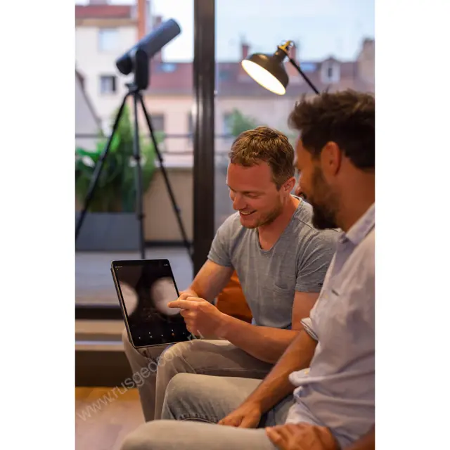 Телескоп выполнен очень компактно и хорошо подходит для путешествий. Управление – максимально простое, но при этом по функциональным возможностям телескоп нельзя назвать моделью для начинающих. Он демонстрирует картинку профессионального уровня и дает возможность вести очень точные наблюдения за объектами космоса, не прилагая к этому чрезмерных усилий. Также удобно, что можно вести групповые наблюдения: к телескопу можно подключать до 10 мобильных устройств одновременно.