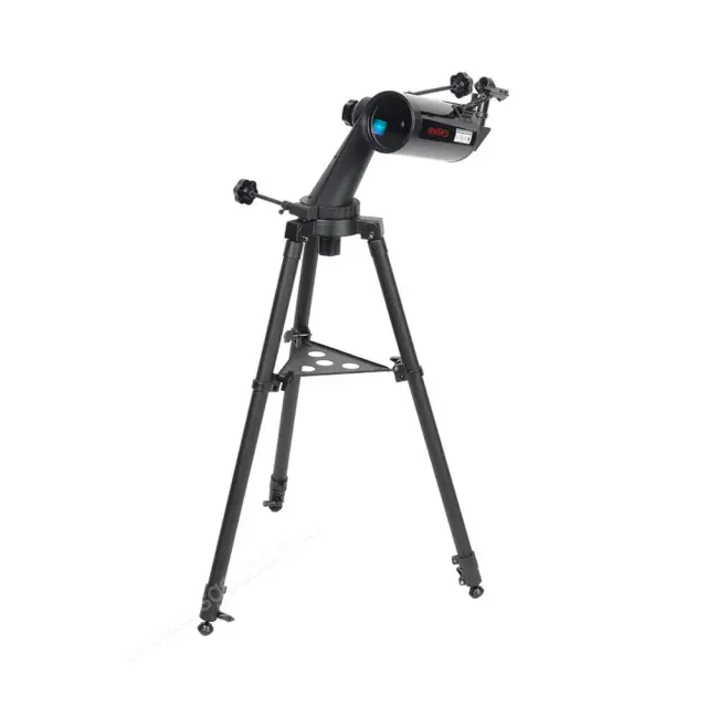 Veber NewStar MAK90 AZII - это зеркально-линзовый телескоп системы Максутова-Кассегрена в металлическом корпусе с апертурой 90 мм, фокусным расстоянием 1200 мм, окулярами PL10 и К25 и угловой призмой 90°. Искатель Red Dot с лазерной подсветкой. Труба телескопа при помощи крепежной площадки присоединяется к азимутальной монтировке, установленной на штатив-треногу.