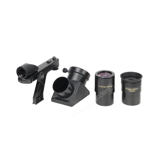 В комплект входят окуляры PL10 ( симметричный окуляр Плёсл) и К25 ( конструкция Кельнер) с просветленной оптикой FMC. Замена окуляров ведет к изменению кратности увеличения – 120х, 48х соответственно.