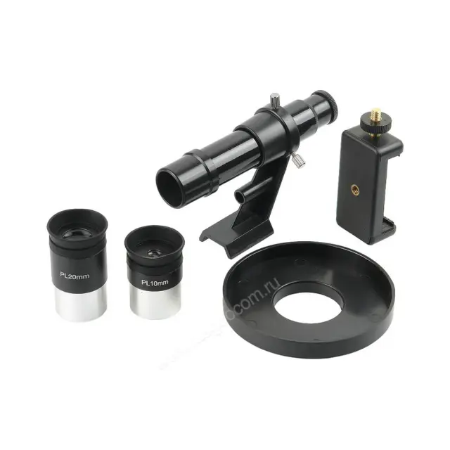 Держатель для смартфона шириной до 80 мм(в комплекте) крепится винтом на хомут трубы. Современные приложения для смартфона демонстрируют карту звездного неба, названия небесных объектов и многое другое – это помогает легче ориентироваться "в космосе" начинающему пользователю.
