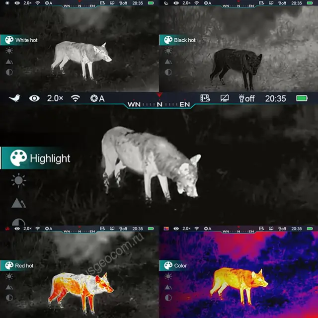 Предусмотрено несколько вариантов цветовых палитр, одна из которых автоматически подсвечивает потенциальные цели, затемняя фон. Охотнику также доступен выбор из 8 прицельных сеток для удобства восприятия. 9 пристрелочных профилей помогут в максимально короткий срок адаптировать прибор ко всему арсеналу, а способность выдерживать мощную (до 6000 Дж) отдачу позволит не ограничивать себя в выборе оружия.