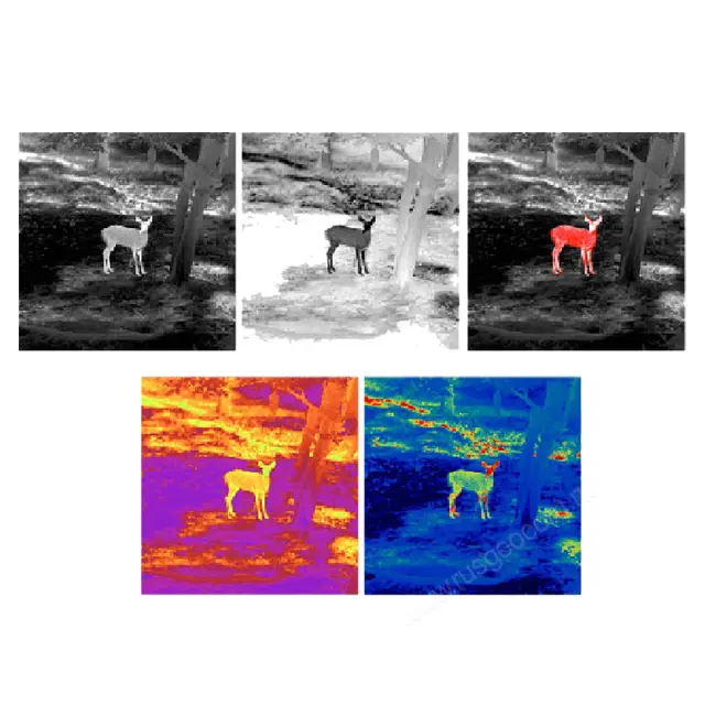 Устройство оснащено чувствительным сенсором с разрешением 400х300 пикселей и плотностью 12um, а также дисплеем 1280х960 пикселей с частотой кадров 50 Гц, встроенным в окуляр тепловизионного монокуляра. Благодаря этому вы получите четкое и комфортное для глаз изображение, а также плавную съемку. Вы сможете приближать изображение с помощью цифрового зума с шагом 0,1x или с использованием увеличения 2,4-9,6x. Это позволяет рассматривать цели с высокой детализацией на средних и коротких дистанциях. С помощью пяти цветовых режимов отображения горячего вы сможете настроить прибор под любые условия съемки и получить наилучший результат.