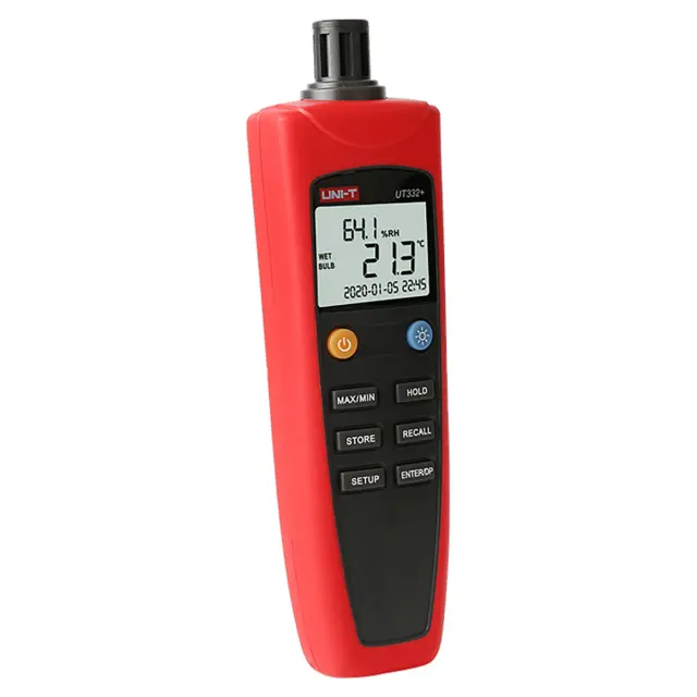 Термогигрометр UNI-T UT332+ — это усовершенствованная версия термогигрометра, предназначенная для длительного и автоматизированного мониторинга микроклимата. Он идеально подходит для задач, где требуется непрерывная регистрация данных: энергоаудит, контроль условий хранения вакцин, логистика, а также мониторинг в серверных и производственных помещениях.