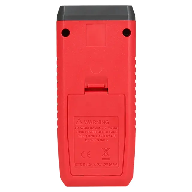 Корпус выполнен из ударопрочного пластика, устойчивого к падениям и вибрациям. Питание осуществляется от трех батареек AAA, что обеспечивает длительную автономную работу. Компактные размеры (140 × 52,5 мм в сложенном виде) и легкий вес позволяют легко носить прибор в кармане или сумке. Автоматическое отключение через 15 минут простоя помогает экономить заряд батареек.