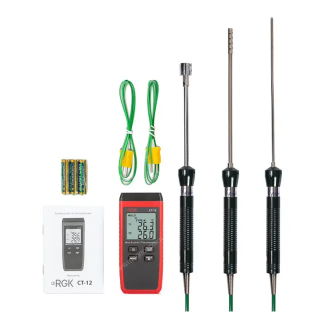 Термометр RGK CT-12 с зондом температуры воздуха TR-10A, поверхностным зондом TR-10S и погружным зондом температуры TR-10W