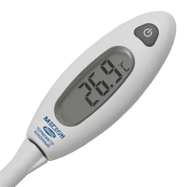 Благодаря скруглённой форме корпуса-ручки цифровой термометр МЕГЕОН 26400 удобно лежит в руке, позволяя вводить зонд в жидкие, сыпучие и вязкие продукты без особых усилий. Батарейный отсек, размешенный с тыльной стороны изделия, снабжен сдвижной крышкой. Это позволяет легко менять элемент питания CR2032 без использования инструментов.