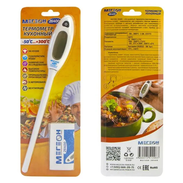Купить термометр цифровой контактный МЕГЕОН 26400, а также получить консультацию специалистов об особенностях и преимуществах данного изделия вы можете в нашем" магазине, связавшись с нами по телефону или непосредственно через сайт – с помощью формы обратной связи или воспользовавшись чатом с онлайн-консультантом.