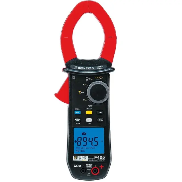 Токоизмерительные клещи Chauvin Arnoux F405 - прибор, который одновременно измеряет постоянный и переменный ток с пиковым значением 1400 А. Клещи предназначены для исследования низковольтных устройств средней мощности. Также устройство может использоваться специалистами по проверке лифтов и других грузоподъемных и транспортных средств. Принцип работы прибора основан на безразрывном измерении электрической цепи путем охвата кабеля, благодаря чему процесс замера становится не только оперативным, но и безопасным.