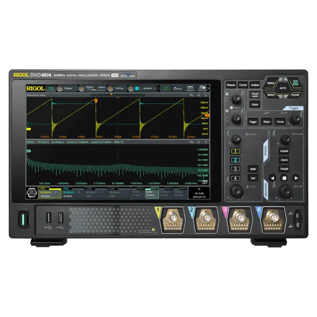Благодаря сенсорному дисплею с диагональю 10,1 дюйма и разрешением 1280 x 800 осциллограф Rigol DHO4804 обладает высокой наглядностью. Поддерживается цветовая градация сигналов, многооконный режим, автомасштабирование и функция поиска и навигации с таблицей событий.