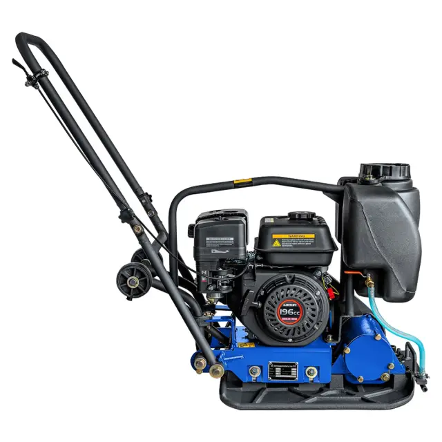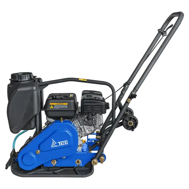Управление виброплитой также очень удобно. Она оснащена складывающейся ручкой для удобной транспортировки и хранения. Встроенные колеса облегчают перемещение оборудования. Кроме того, на рукоятке управления имеется дроссельная заслонка, которая обеспечивает удобство оператора.
